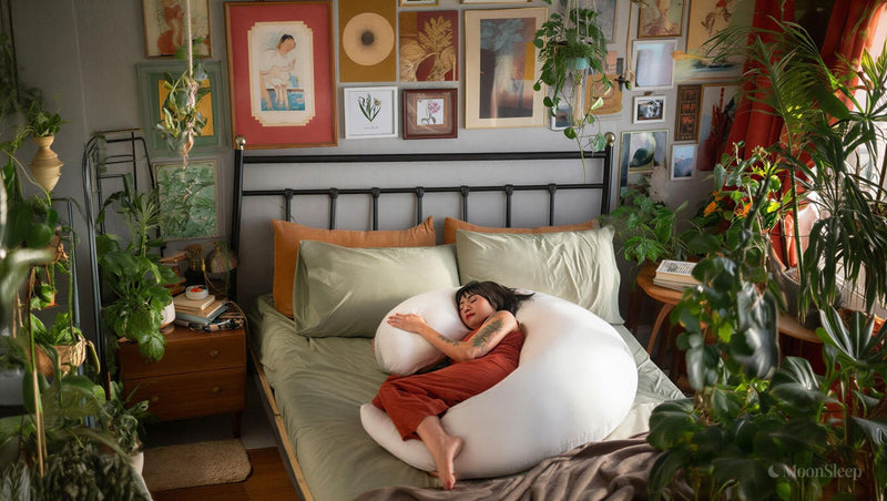 Regular body pillows are flat tubes that shift and bunch up. MoonSpoon's crescent shape wraps around your body, supporting hips, knees, and spine simultaneously without readjusting.